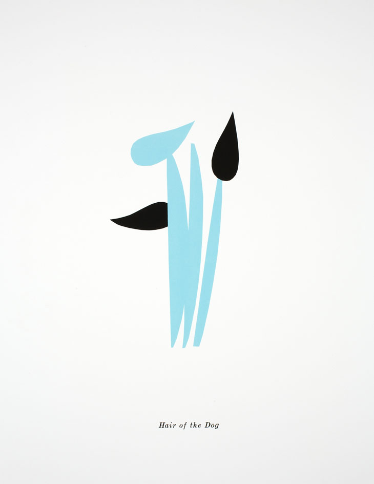 Matthew Brannon’s work investigates media imagery as a cultural interface, exploring the gap between expectation and inadequacy. Using topical problems such as substance abuse, body image, and class divide as metaphors for social and psychological fractioning, Brannon pits visual ‘ideals’ versus internalised corruption to create conceptual instances of breakdown. In Hair of the Dog, Brannon’s clip art-style motif reduces the idea of individuality to an infinitely replicable generic. Coupled with a cynical script typeset in ornamental font his blossoms become emblematic of disease, addiction, and futility.